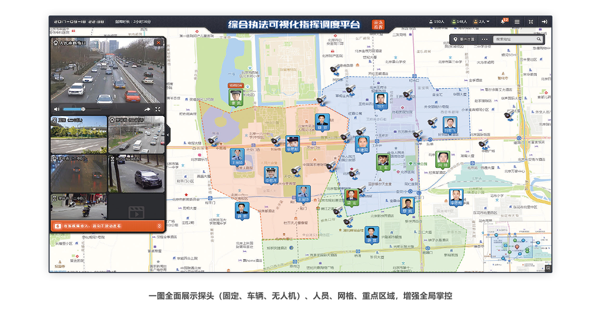 整合可视化指挥调度平台、视频监控预警平台以及数字城管,对指挥中心提档升级,将三个平台融为一体,